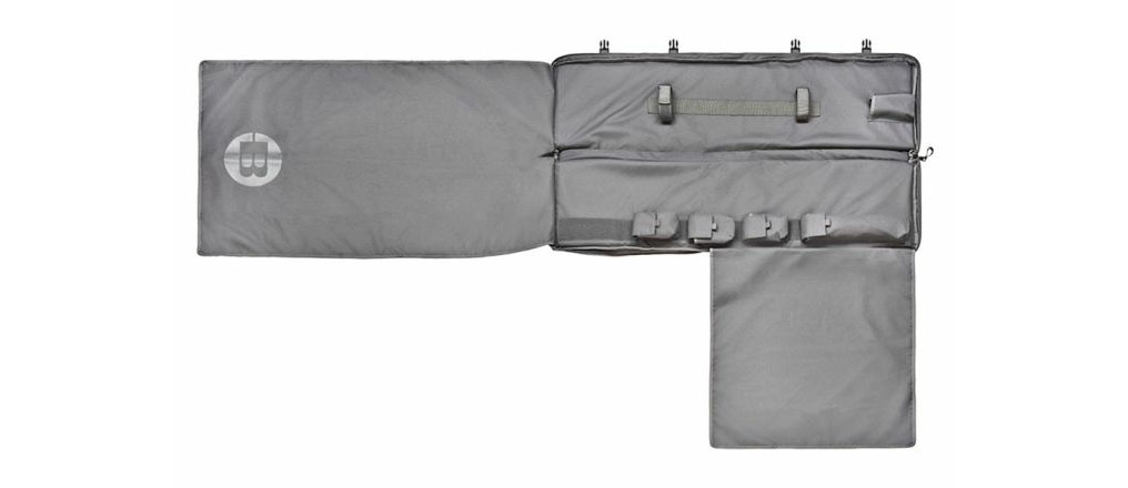 Housse / Mallette de transport pouvant se transformer en tapis de tir rembourré en mousse haute densité, offrant une protection totale contre les chocs.