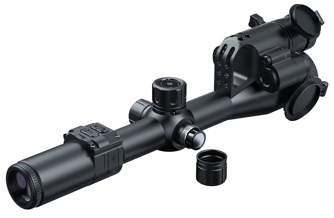 Les fonctionnalités supplémentaires incluent l'enregistrement photo et vidéo, la connectivité Wi-Fi, un calculateur balistique, un gyroscope et une boussole électronique. La lunette est alimentée par une batterie Li-ion 21700 offrant jusqu'à 6 heures d'autonomie et est conçue pour résister aux conditions extrêmes avec une certification IP67.