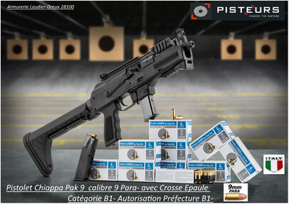 Pistolet Chiappa Pak 9 Calibre 9 mm Para ( crosse en option) AR15 chargeur 10 coups Génération 2