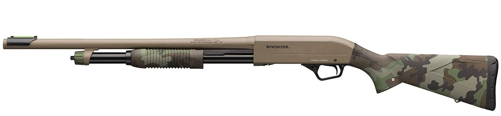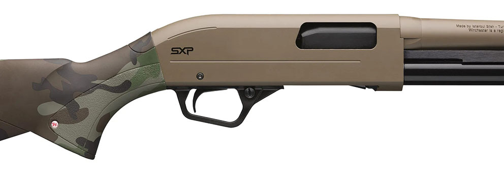 Version Défender à canon rayé destinée au tir de projectiles uniques, le SXP Woodland FDE combine robustesse, rapidité de répétition et ergonomie moderne